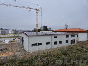 Dach und Installation der PV Module sind abgeschlossen. Auch die beiden Tore sind bereits installiert. Die Unterkonstruktion der Außenwände ist nahezu fertig. Vergangene Woche konnten wir auch die Bemusterung der Böden abschliesen und haben den Förderbescheid für die Beschaffung der Erstausstattung bekommen. Außerdem ist ein Teil der Außenwände schon montiert sowie einige Fenster schon eingebaut. ... Mehr erfahren