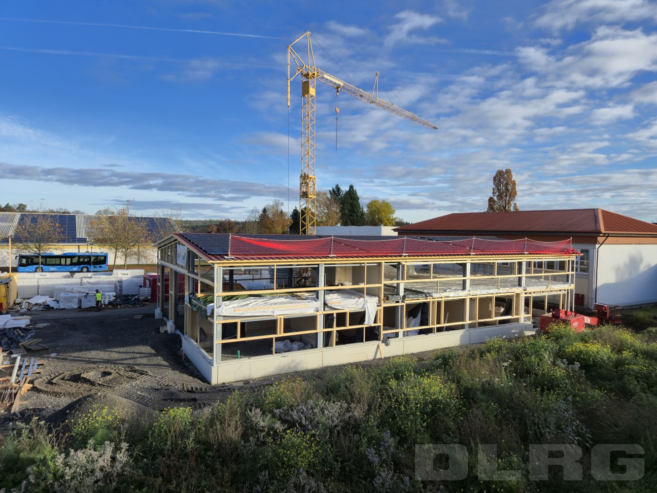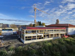 Dach und Installation der PV Module sind abgeschlossen. Auch die beiden Tore sind bereits installiert. Die Unterkonstruktion der Außenwände ist nahezu fertig. Vergangene Woche konnten wir auch die Bemusterung der Böden abschliesen und haben den Förderbescheid für die Beschaffung der Erstausstattung bekommen.